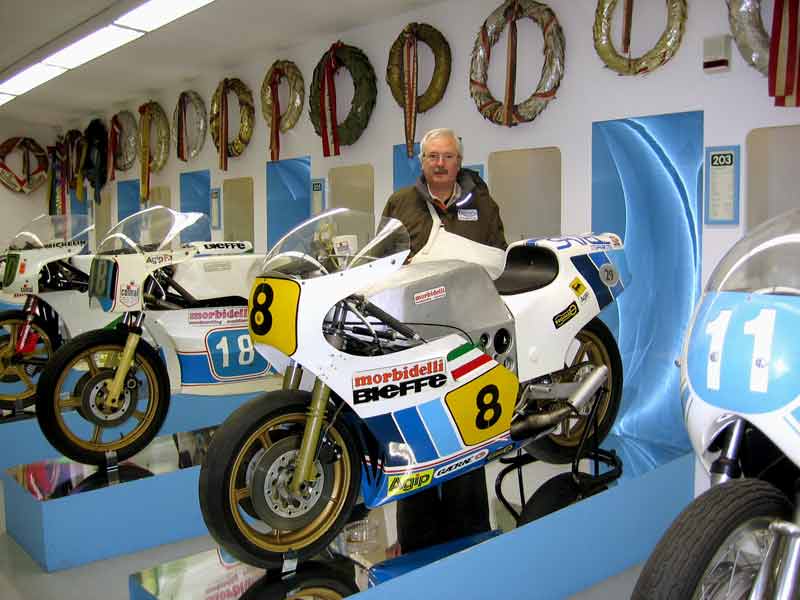Ed eccoci allo scopo principale del nostro viaggio , una visita al Museo Morbidelli. Essendo ospiti di Rossi , che lo conosce bene , abbiamo avuto la fortuna di avere Giancarlo Morbidelli come cicerone e in questo modo abbiamo potuto avere un resoconto della raccolta dei vari modelli e aneddoti molto interessanti . |